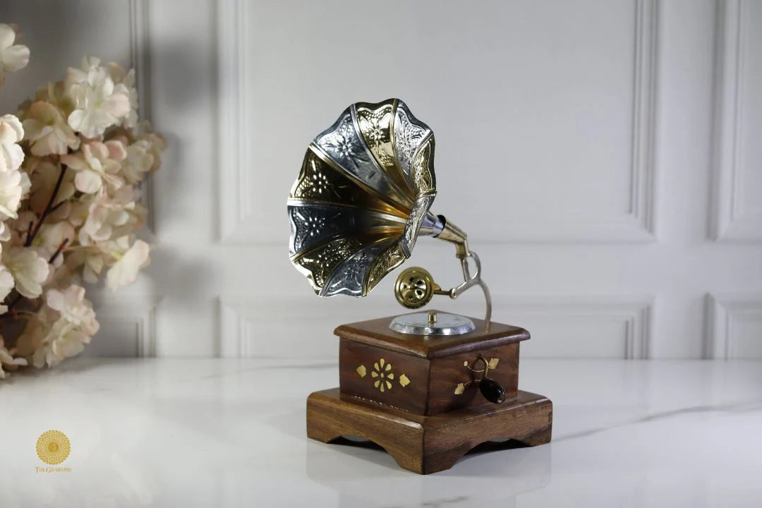 Bring vintage charm to your space with this classic wooden gramophone, crafted with rich wood finish and antique detailing. A perfect decorative piece for living rooms, offices, or vintage-themed interiors, it adds nostalgic elegance and timeless character to your home décor.