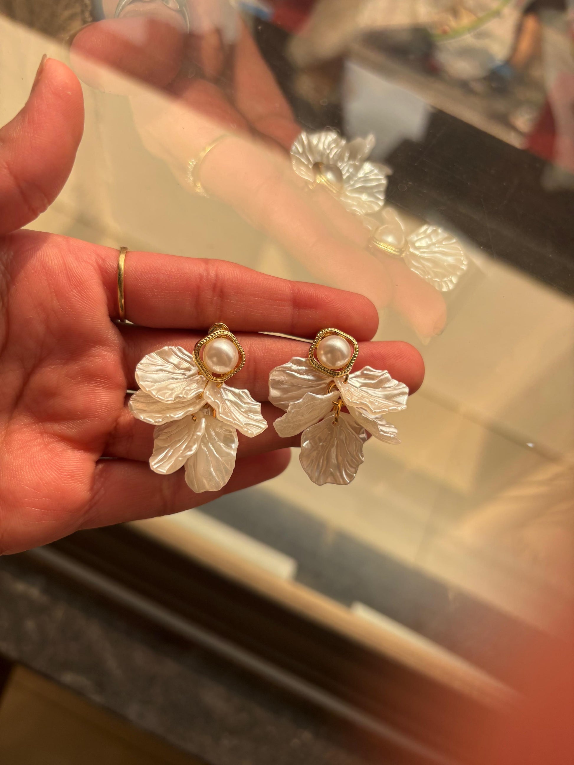 Ivory Leaf Elegance earrings feature delicately sculpted ivory-toned leaves paired with a luminous pearl accent and refined gold detailing. Designed for graceful sophistication, these elegant statement earrings add soft luxury, timeless charm, and feminine allure to both festive occasions and elevated everyday looks.